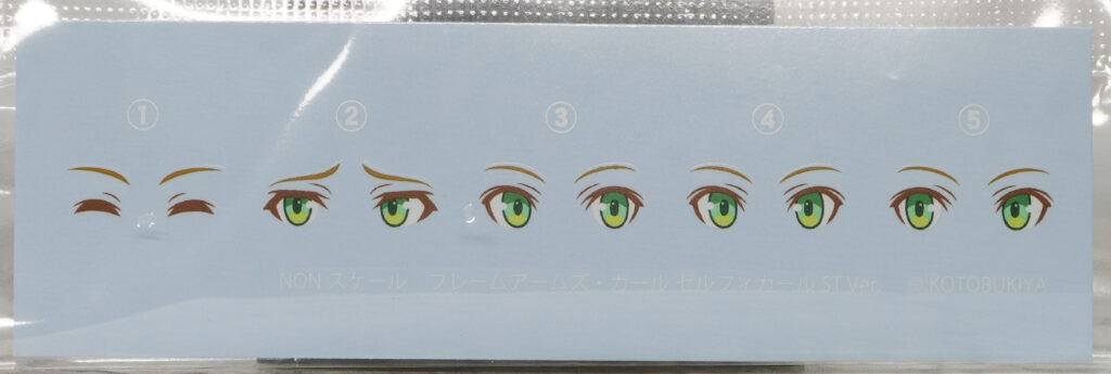パッケージと水転写デカール。瞳を再現できるデカールが付属。