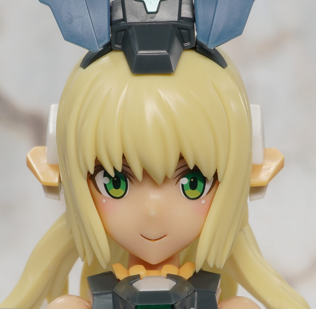 ヘッドギアがゼルフィカール仕様のデカいタイプで、頭頂のメカは塗装済パーツ。