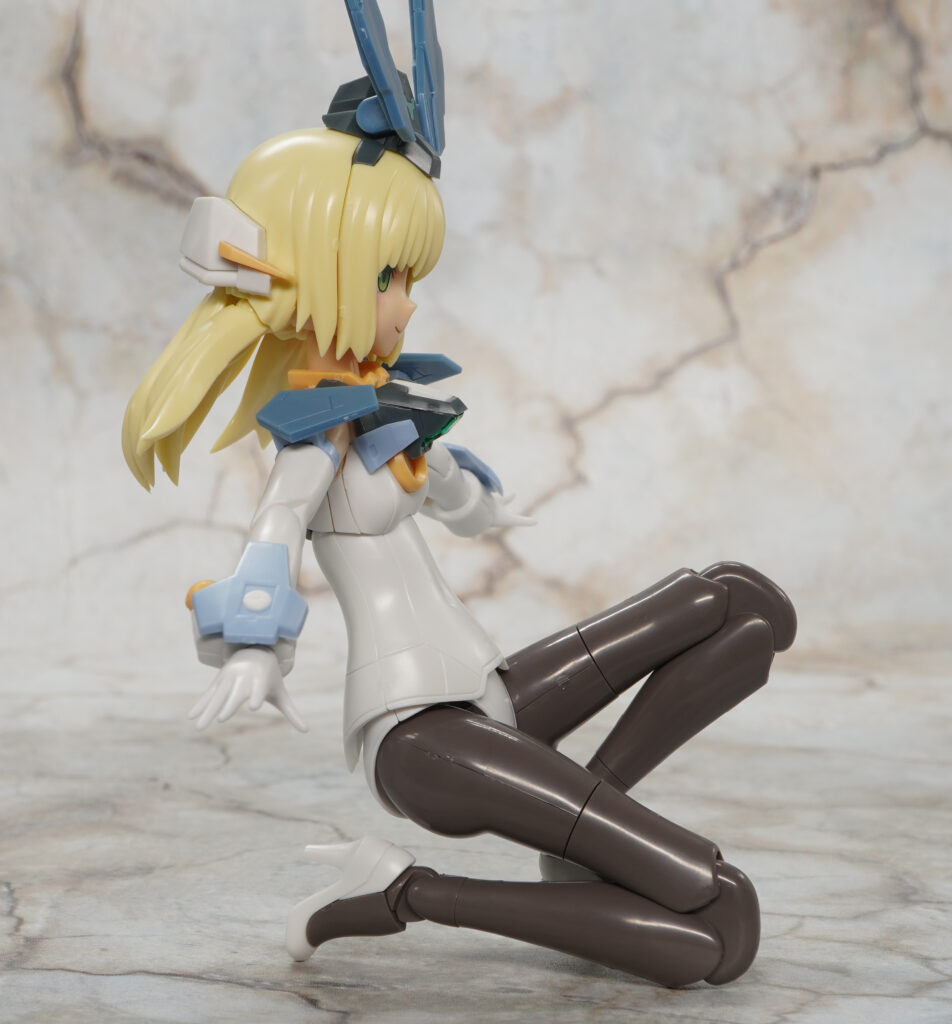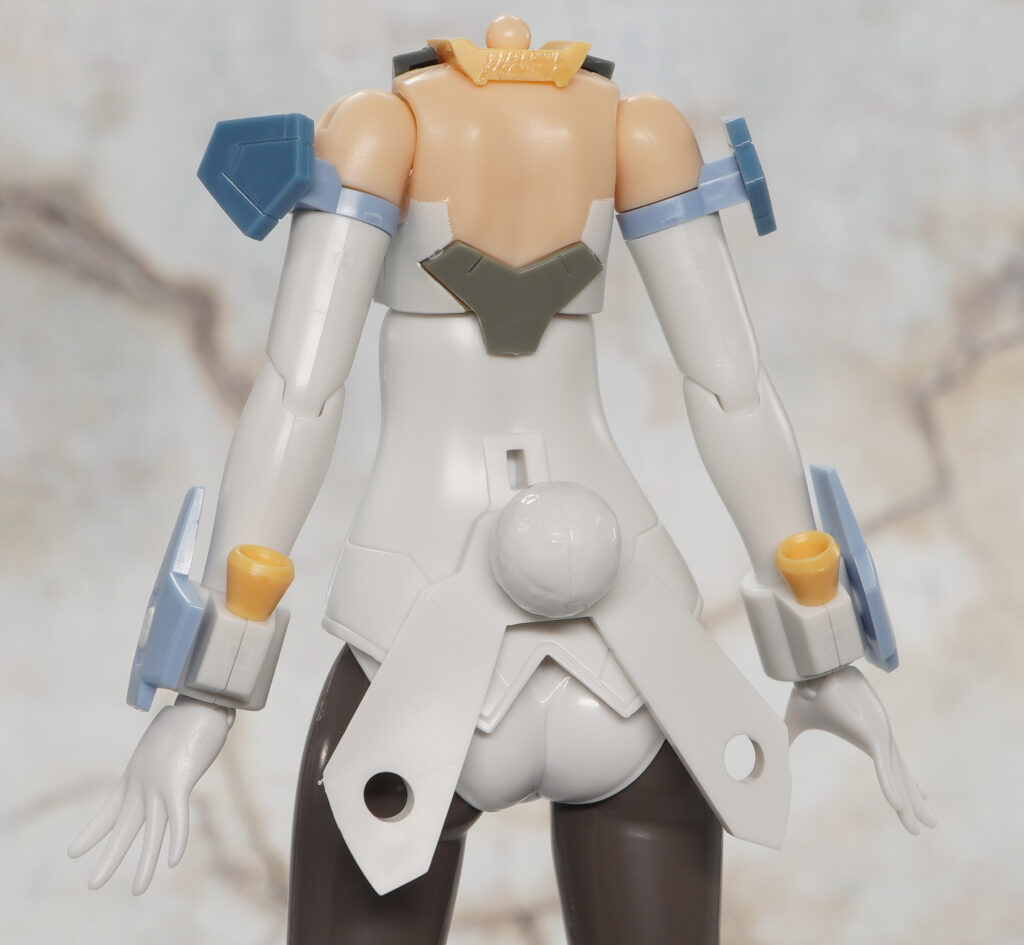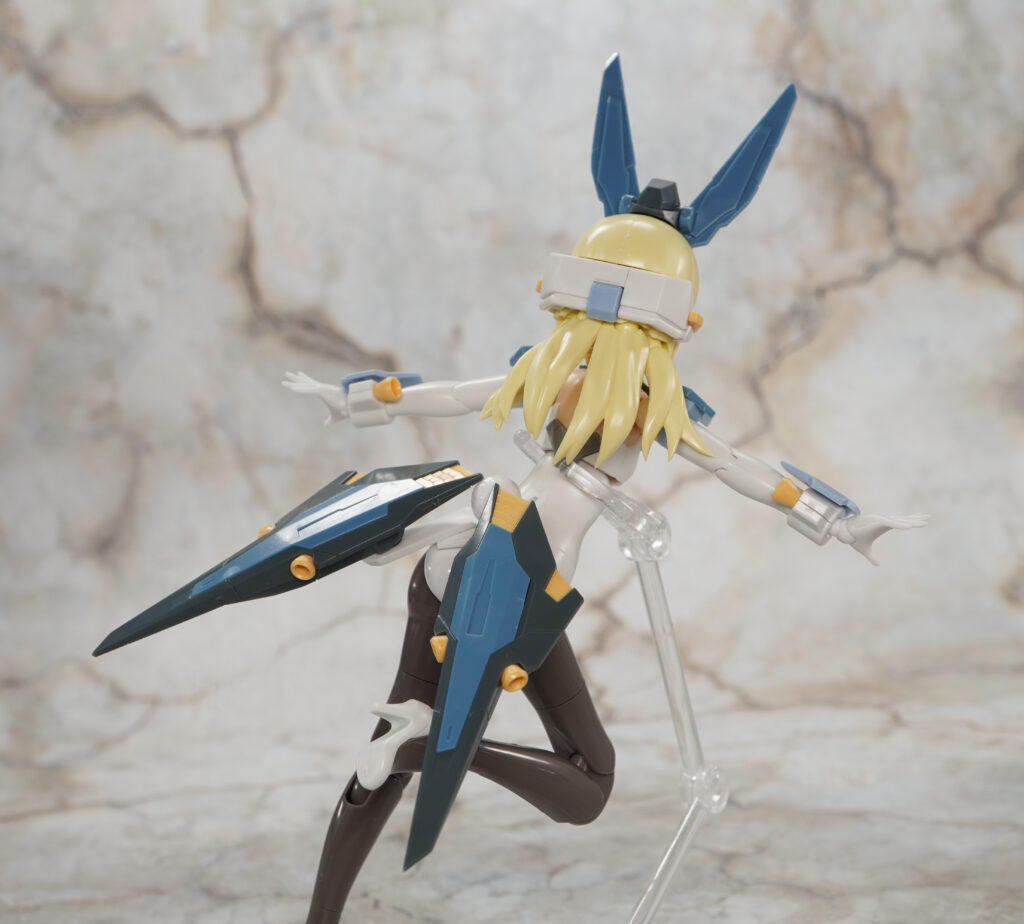 頭部や胸装甲が変化した他にも後ろ髪が4つのブロックに分割されたり、バーゼラルドではY字型だった股関節が軸可動するタイプに変わり開脚範囲が広がっています。