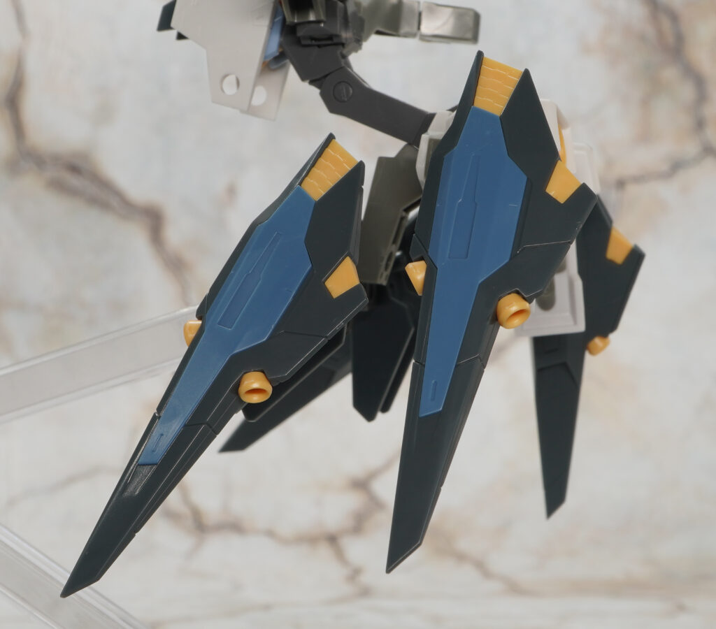通常版の紺色ゼルフィカールとの違いは”試作型光波射出器”と”攻性防盾システム”が省かれた代わりに、ガンレイピアが4基追加されてます。