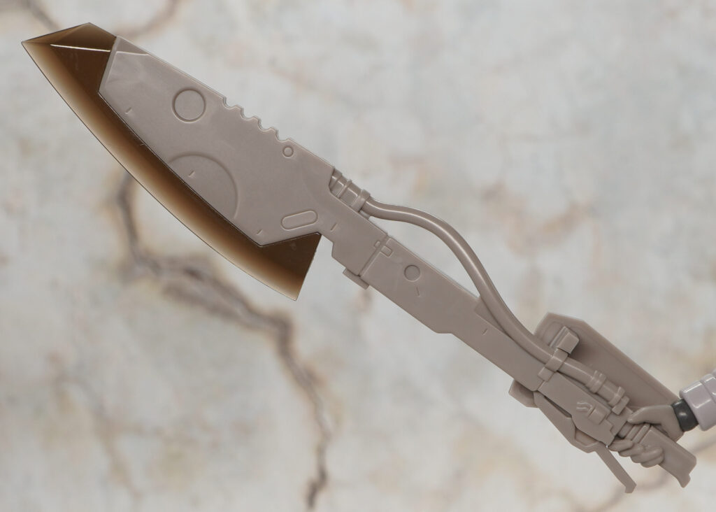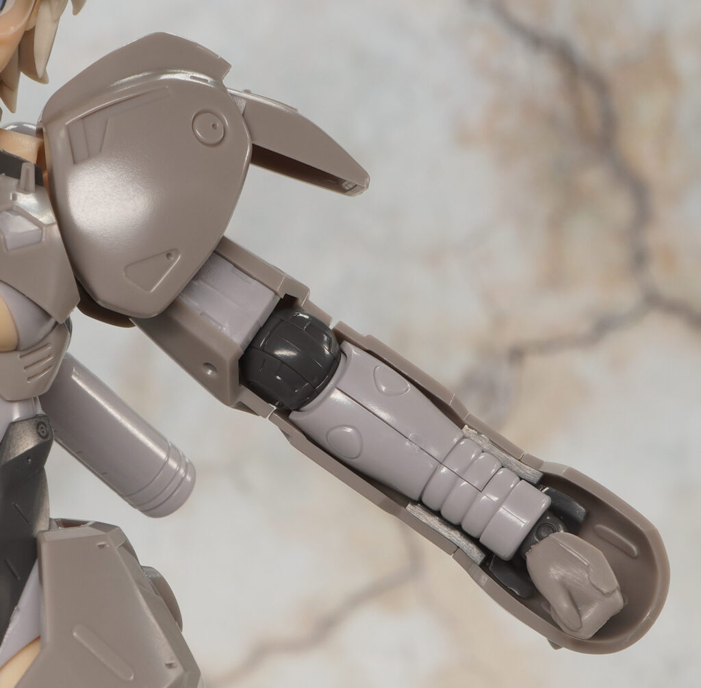 腕部はヒジ関節でロール可動し手首は装甲に覆われててちょい動かし難い感じ。