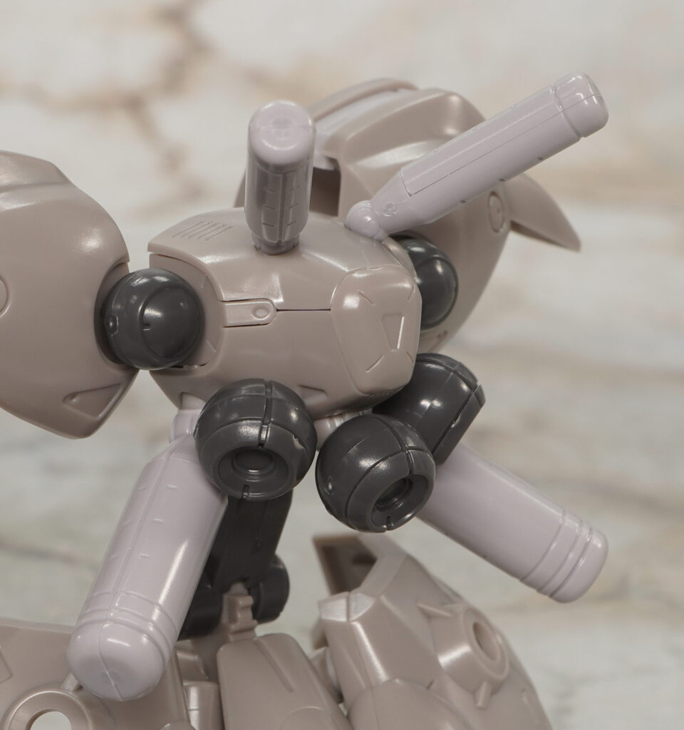 バックパック上部の白いパーツに武器のマウントパーツを取り付けることができ、他にも白いプロペラントタンク型のパーツにも交換できます。