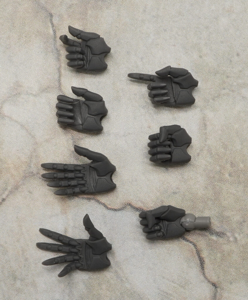PVC製のハンドパーツが7種類付属。