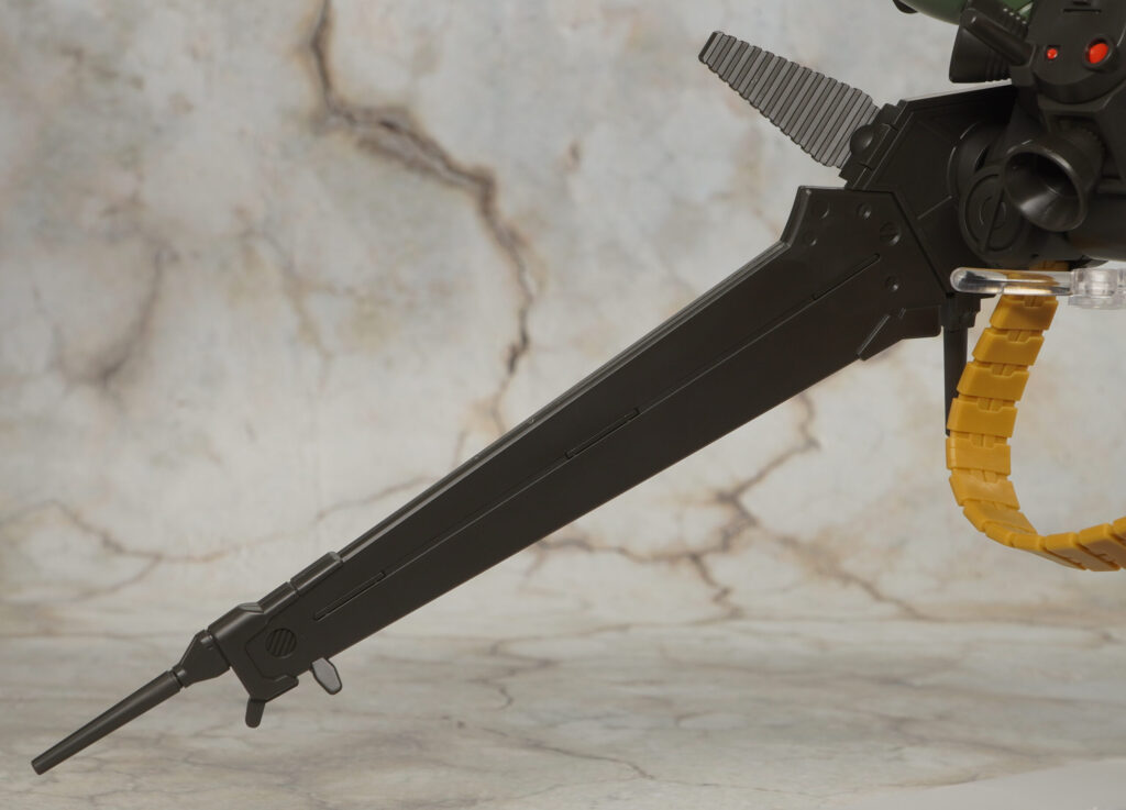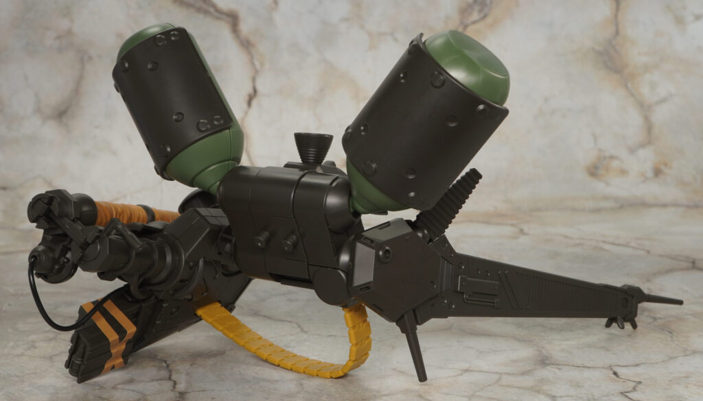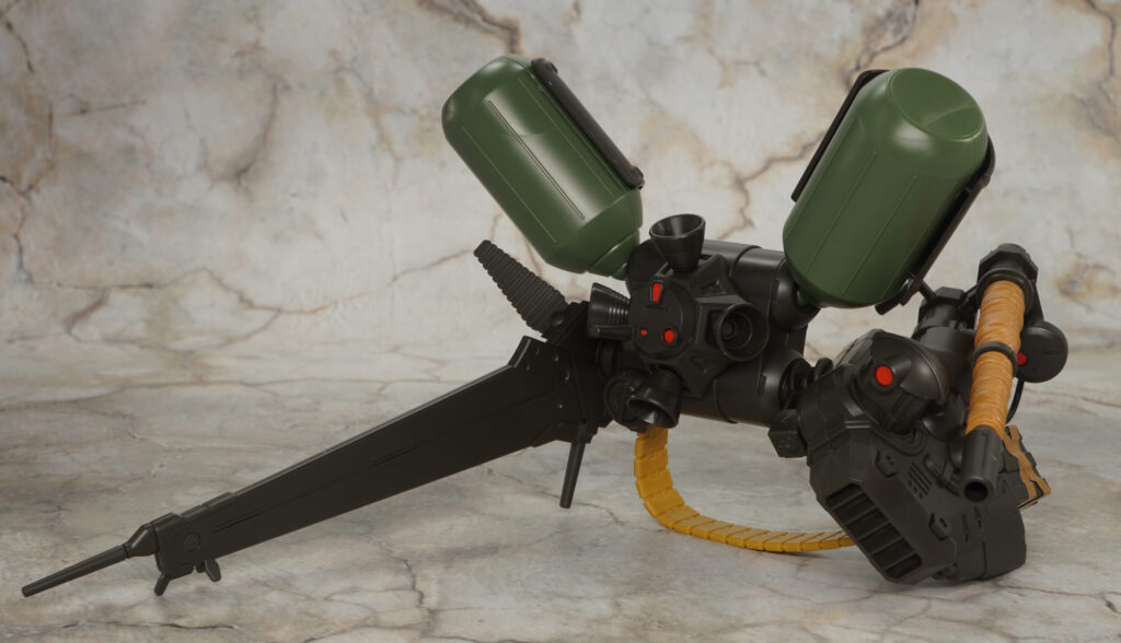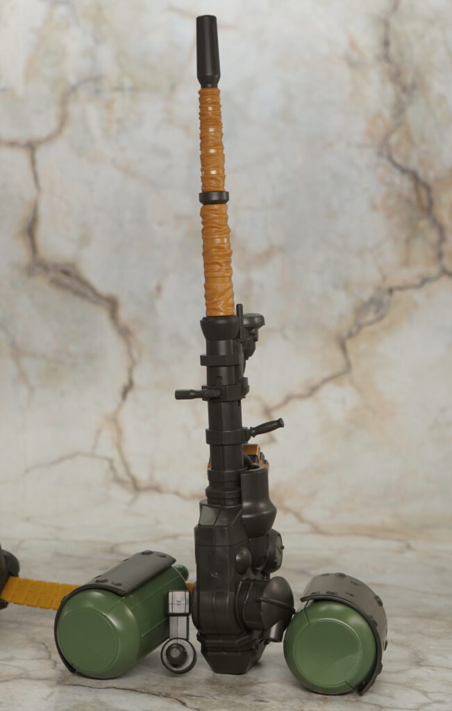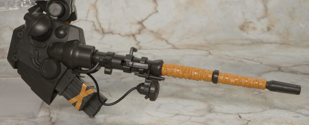 ブルーノ砲の砲身は折りたたんで収納状態にでき、砲身のシーリングみたいな部分はザラついた布の様な質感が特殊加工で再現されているぞ!