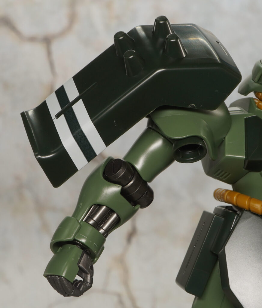 右肩のスパイクシールドの白ラインはシールで再現。