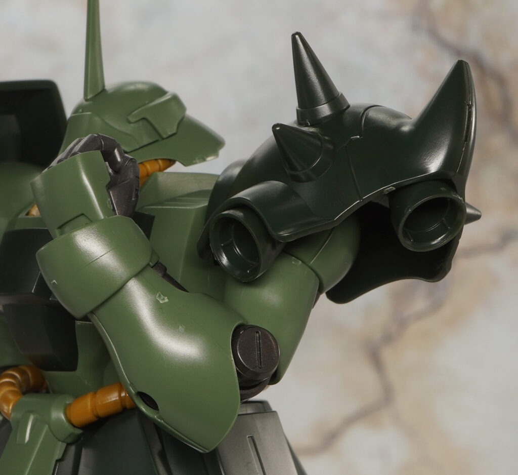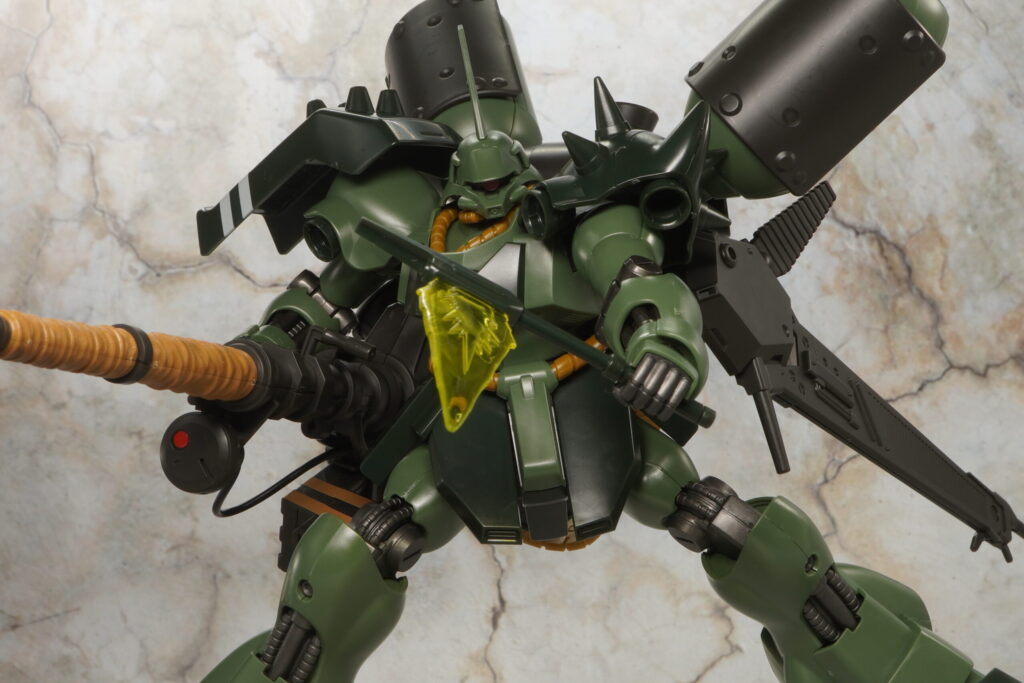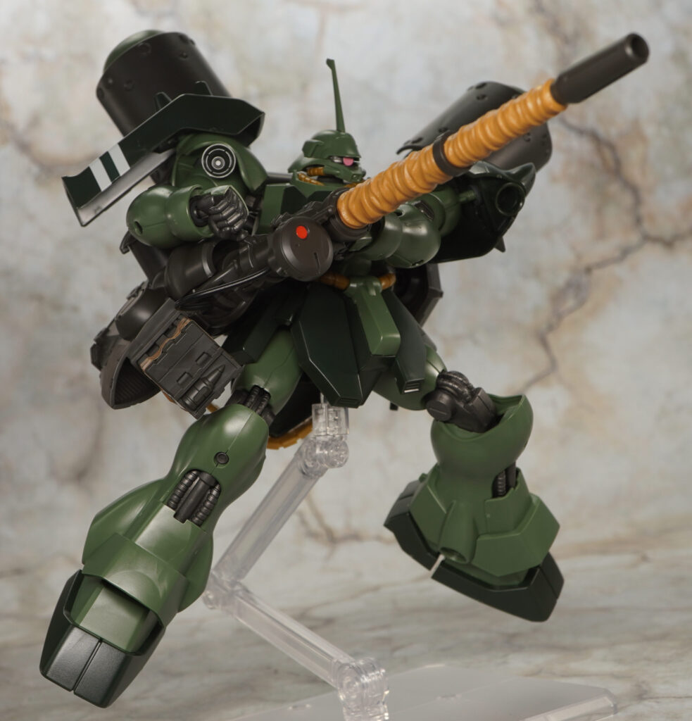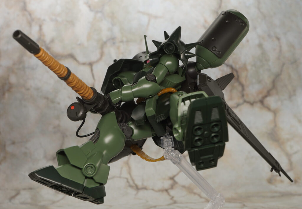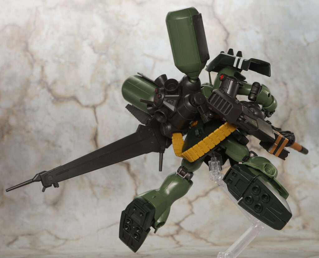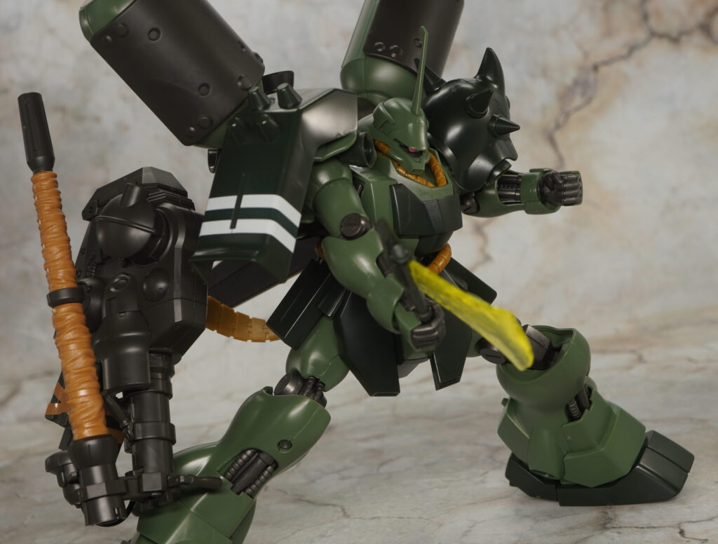 HGUCのギラ・ドーガ本体は2008年発売でバーニアやスラスター内部の黄色など塗装が必要だったりしますが、がっしりしたプロポーションでメチャカッコ良く可動範囲も広め。