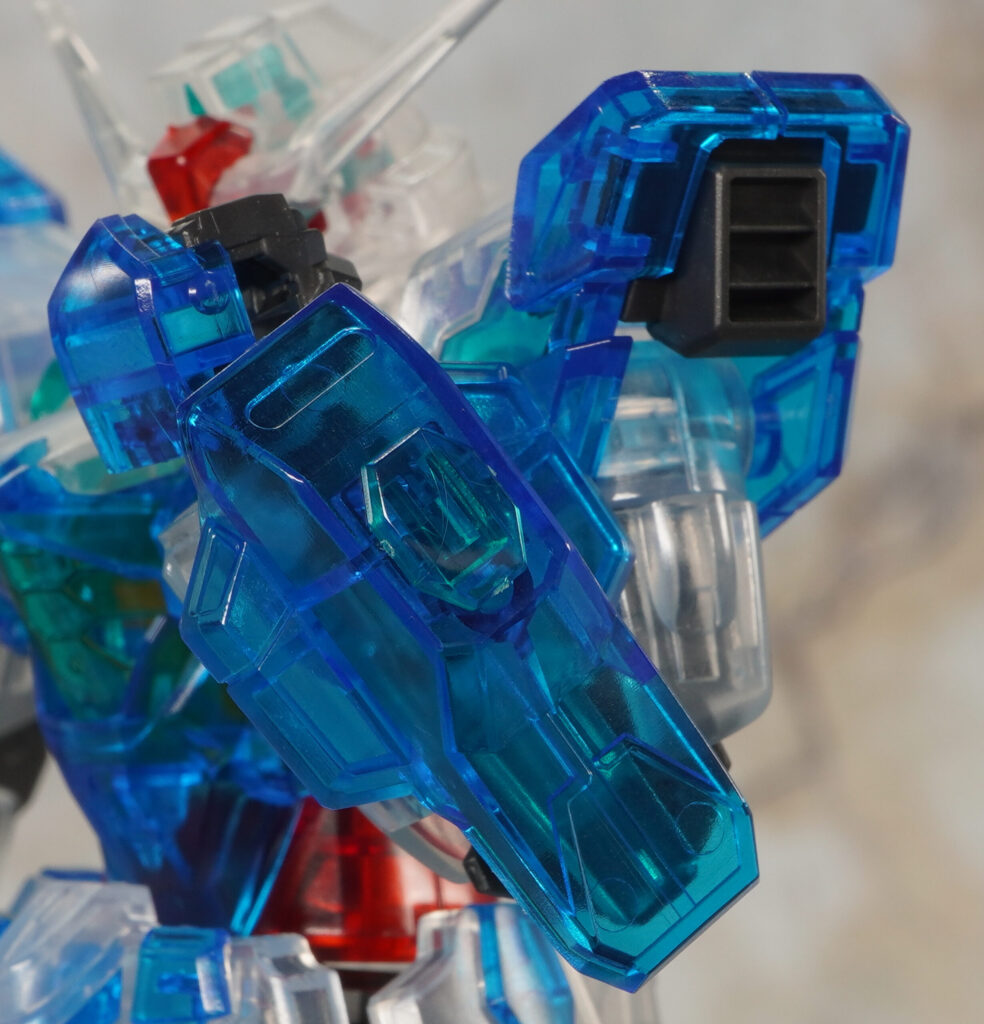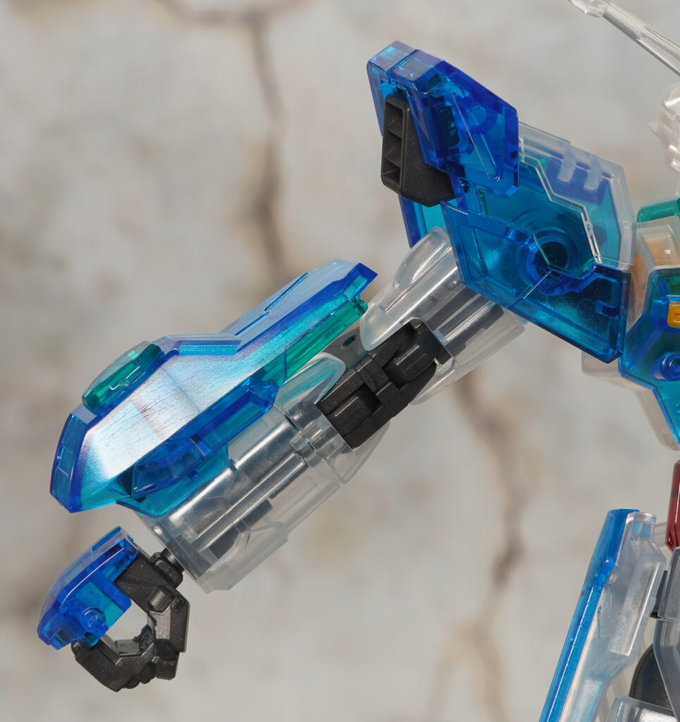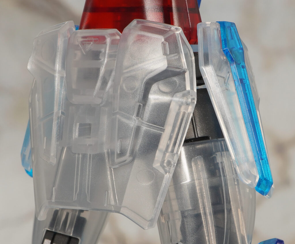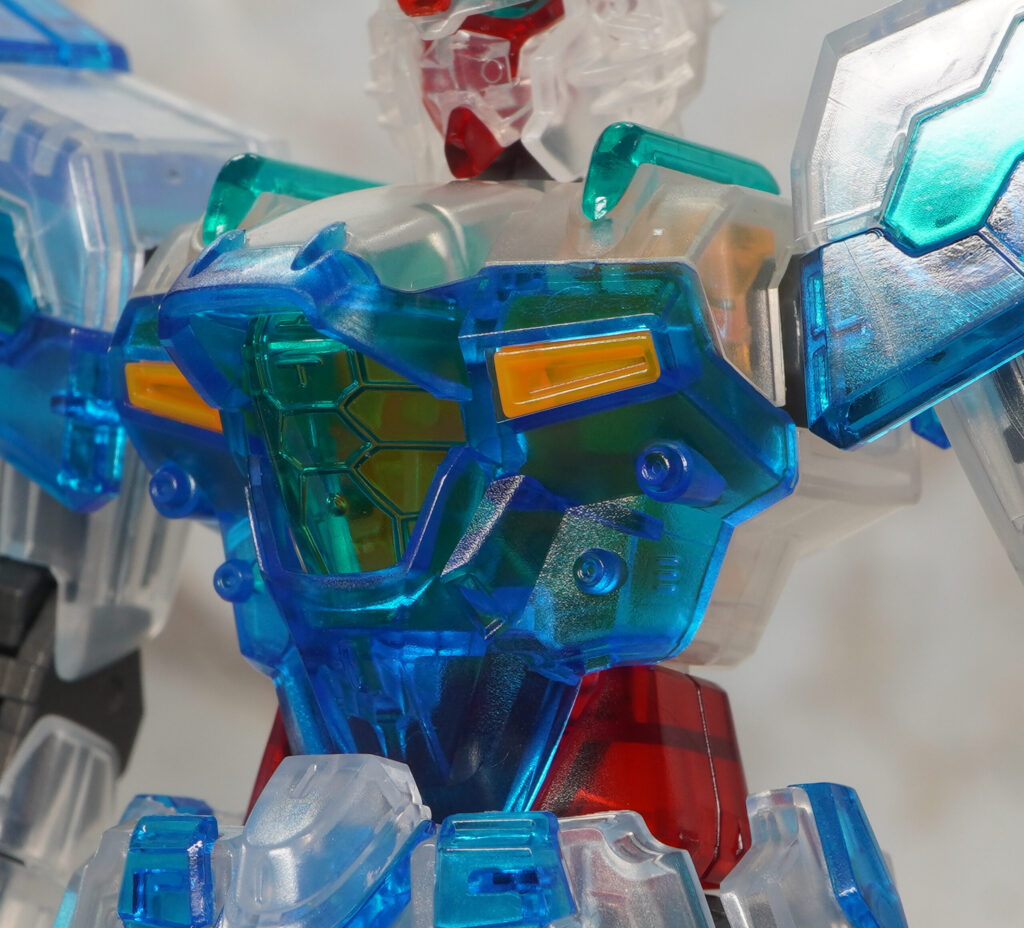 全身の白や青、赤、黄色い装甲が鮮やかな色合いのクリアパーツになり、関節類はメタリックな成形色で造形されているぞ!
