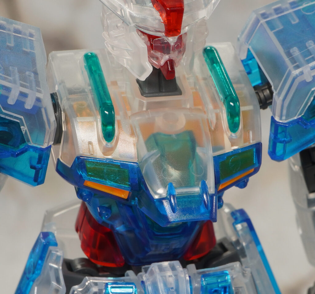 胸や鎖骨、手足のフィンなど元々クリアグリーンだった部分はそのままクリアパーツが使われています。