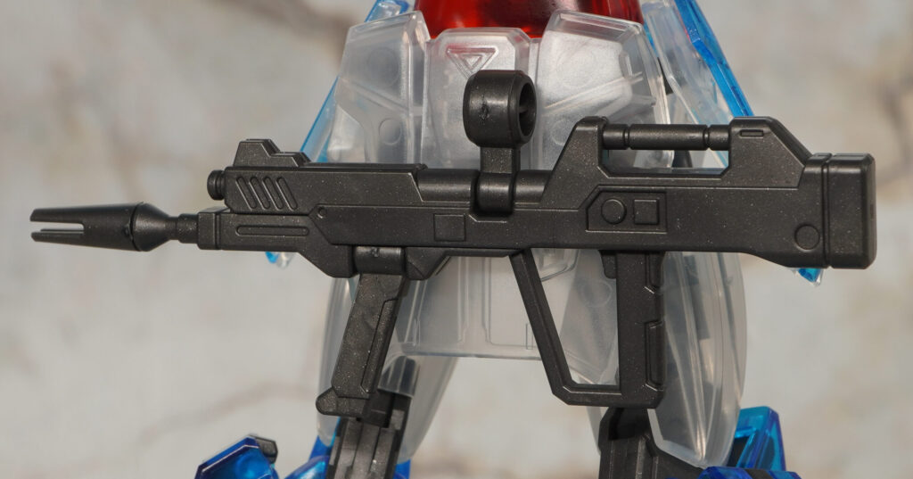 デスティニーガンダムと同じ高エネルギービームライフルが付属しリアアーマーにマウントできるぞ!