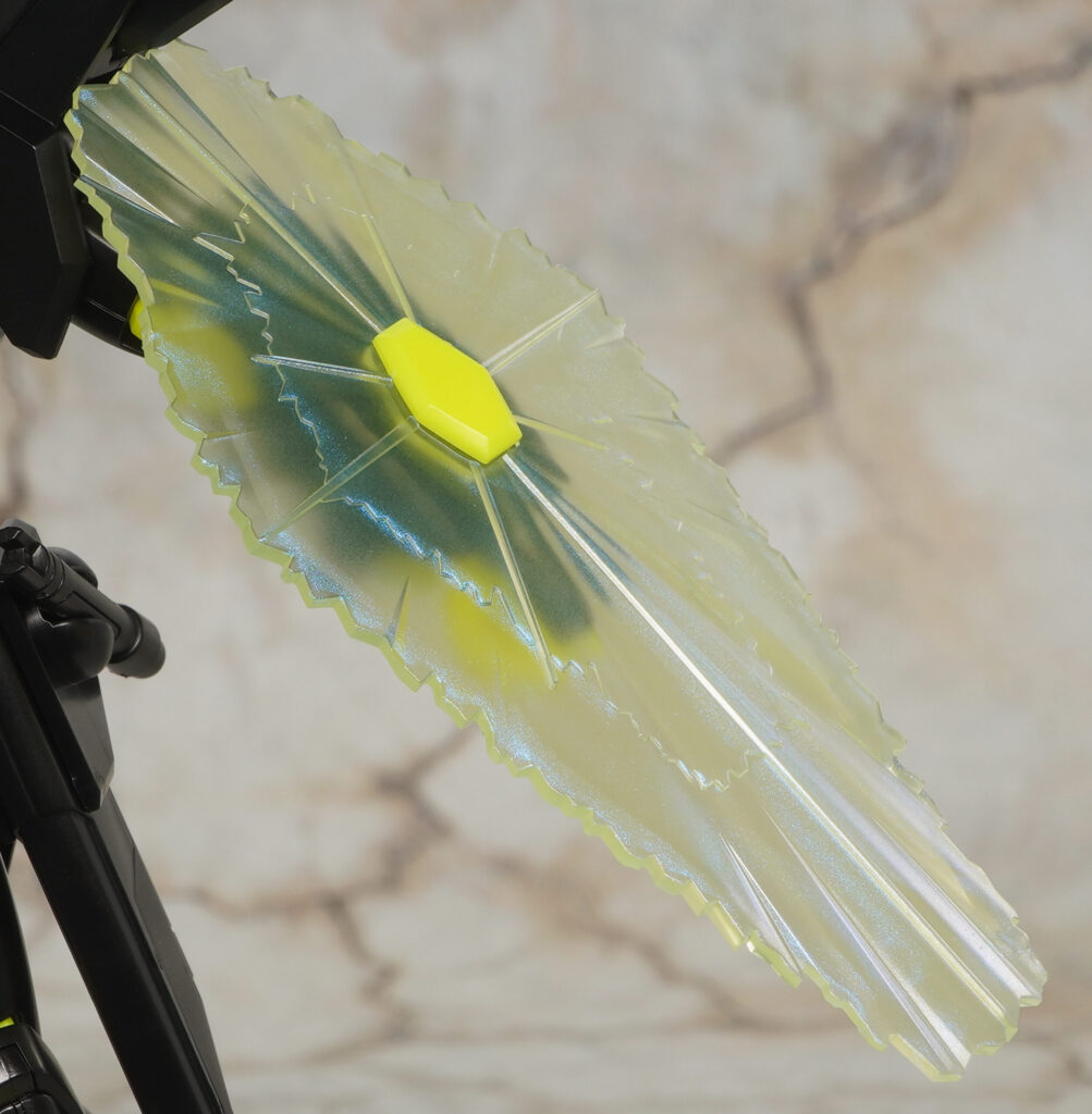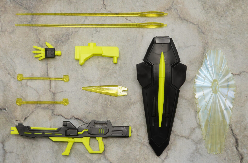 ツインアイとシールド以外のクリアエフェクトは偏光樹脂ではありませんが、ネオンイエローに合わせてクリアイエローに変わってました。