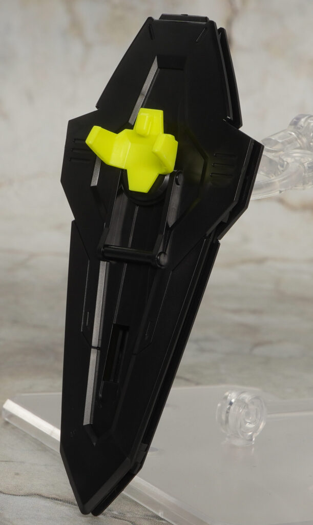 付属品はMA-M727A3 高エネルギービームライフル、MA-FZ51 ヴェルシーナ ビームサーベル×2、MMI-X525 インフェクタス ビームシールド、RQM73 フラッシュエッジG-3 シールドブーメラン、シールドブーメラン用エフェクト、左平手、MA形態用ジョイントです。
