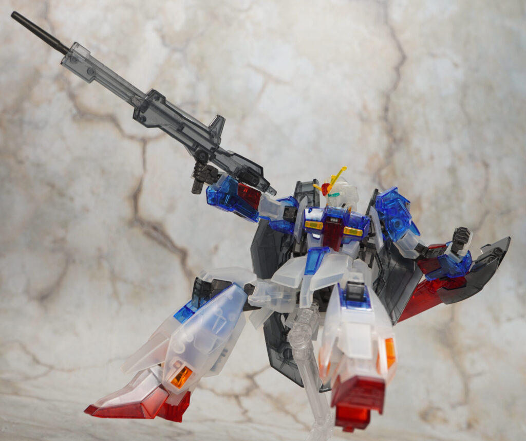 内容はGEP版ゼータガンダムをそのままクリアカラーにした物で、トリコロールな青白赤と黄黒の部分をクリア成形色で造形。