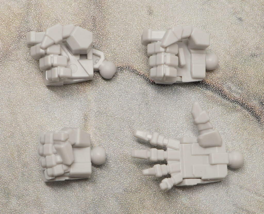 ハンドパーツは左右の握り手と平手、持ち手と、右角度付き持ち手が付属。