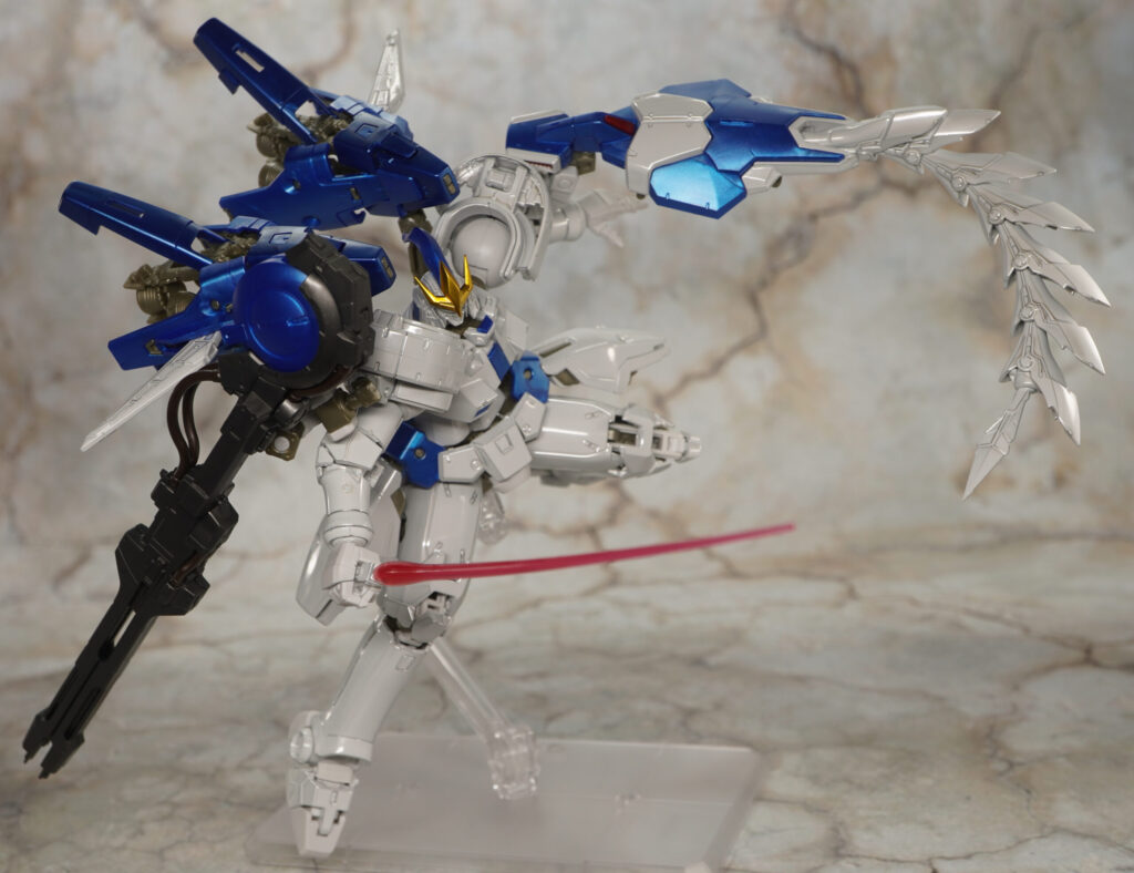 チタニウムフィニッシュ仕様になった1/144スケールの火消しの風”プリベンター・ウインド”ことゼクス・マーキスのフィギュアが付属。